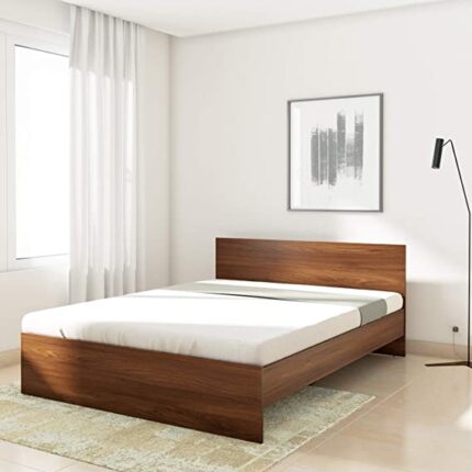 Amazon Brand – Solimo Medusa Engineered Wood Queen Size Bed Without Storage – (Walnut Finish_Brown)