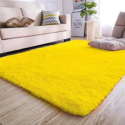 Naze Modern Polyester Anti Slip Shaggy Fluffy Fur Rug and Carpet for Living Room, Bedroom (Yellow, 5×8 feet)