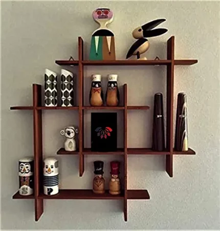 ANTICO WOODENIA® Extra Large Wooden Dual Squares Wall Shelf| Wall Mount| Wall Rack| Wall Bracket| Wall Cabinet| Floating Wall Shelves For Home Decor, Home Decoration, Living Room, Kitchen, Bedroom, Storage, Pooja Room, Office| Wood Wall Racks And Shelves| Big Mounted Cabinets (Auburn Slick Brown)