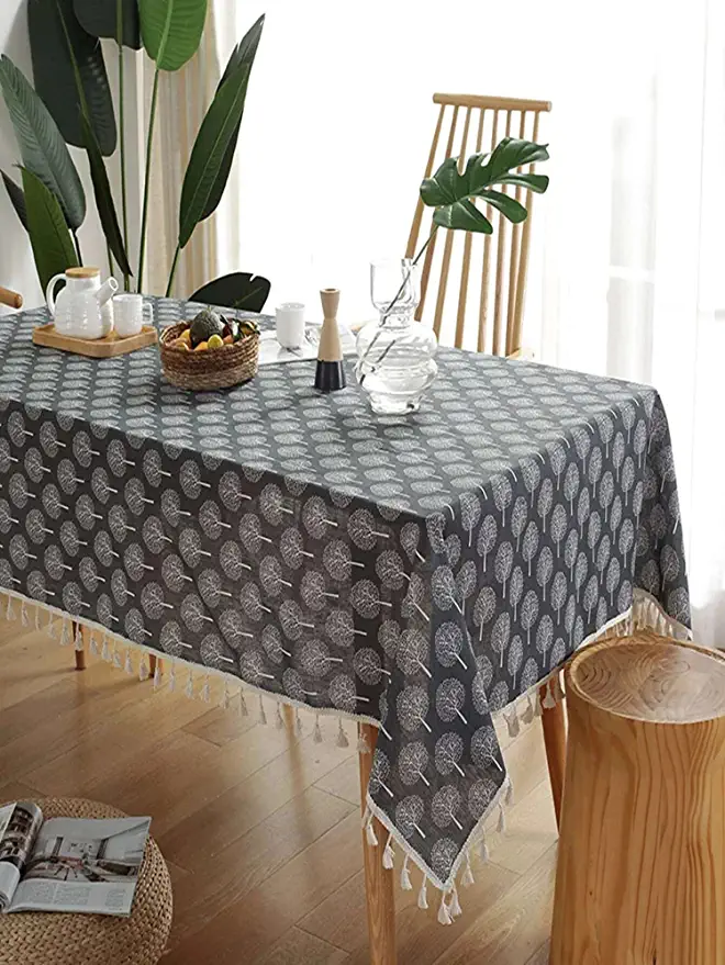 Home Dining & Bar Table Linen House of Quirk Rectangle Tablecloth Cotton Linen Table Cloth Dust-Proof Table Cover for Kitchen Dinning Tabletop Decoration (140x180cm, Dark Grey Trees)