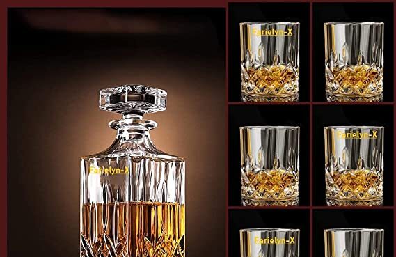 QMP Italian Style VIP 7pcs Set Imported 1’Decanter (1000ml ) with 6 pic Whiskey Glass (310 ml) Fashioned Tumblers for Perfect for Home, Restaurants and Parties 7 Count. (Long DR)