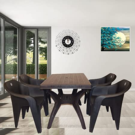 Reliable Furniture Premium Rectangular 4 Seater Plastic Dining Set Browen- 1 Dining Table with 4 Chairs Balck