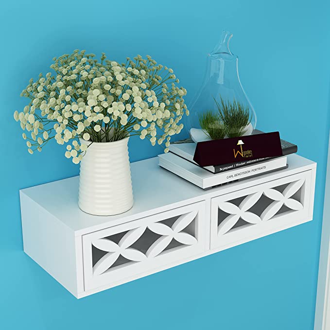 - Wall Shelf Features : This shelf features a drawer which adds elegant touch to any room decor while adding functional storage space. Our individual hanging drawers offer a beautiful and functional place to display and store all household items