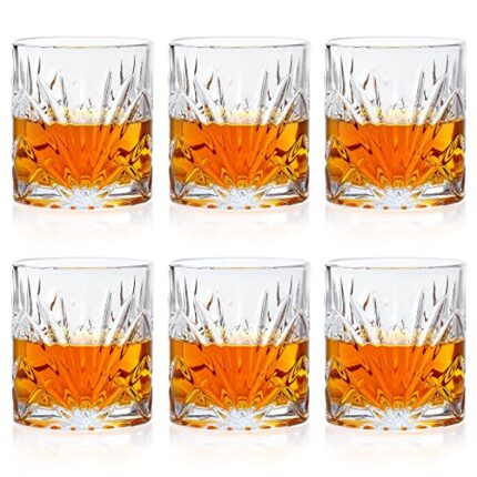 About Space Old Whiskey Glass (Set of 6) – 320ml Crystal Cut Barware Drinking Glasses for Whisky, Bourbon, Scotch, Liquor, Cocktail Drinks – Transparent Vintage Fashioned Cocktail Tumblers