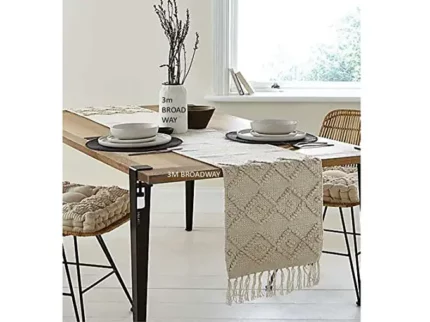 3M Broadway Oragnic Cotton Handmade – The Design of Dining Table Runner Mat Soft Runner for Living Room, Bedroom, Kitchen, 14 Inch x 64 Inch